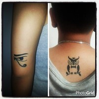 While the Owl is an oracle of secret knowledge, In ancient Egyptian, Celtic, and Hindu cultures the symbolic meaning of owls revolved around guardianship of the underworlds, and a protection of the dead. What better way to pair her Airbrushed Owl with The Eye of Horus or The All Seeing Eye as you will Airbrushed on her upper arm which symbolises protection, and good health and ward of evil energies or " The Evil Eye"